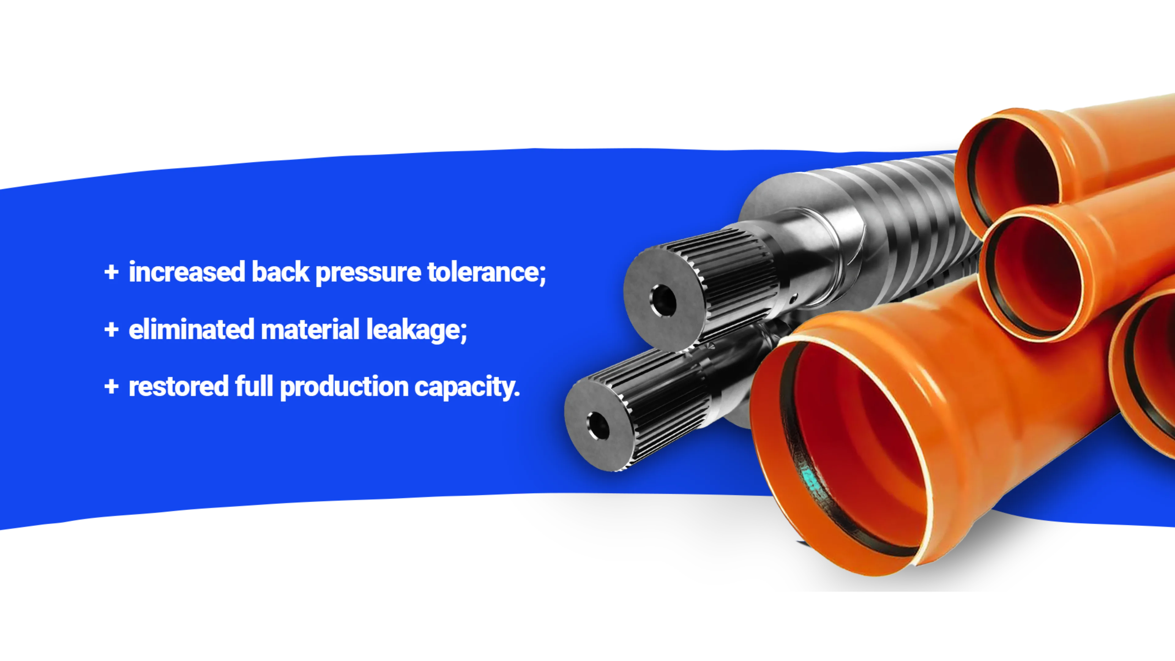 The installation of the modified screws resulted in a substantial improvement. The system's tolerance to back pressure increased, eliminating the material leakage issue and enabling the client to restore full production capacity.